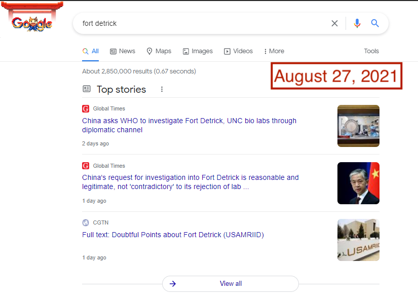 The amplification of conspiracy theories by Chinese state media and officials is not in itself remarkable, and Fort Detrick is far from Beijing’s only target of disinformation narratives about the origins of the virus. What is remarkable about the Fort Detrick narratives is their foothold in powerful, influential places: search engines.