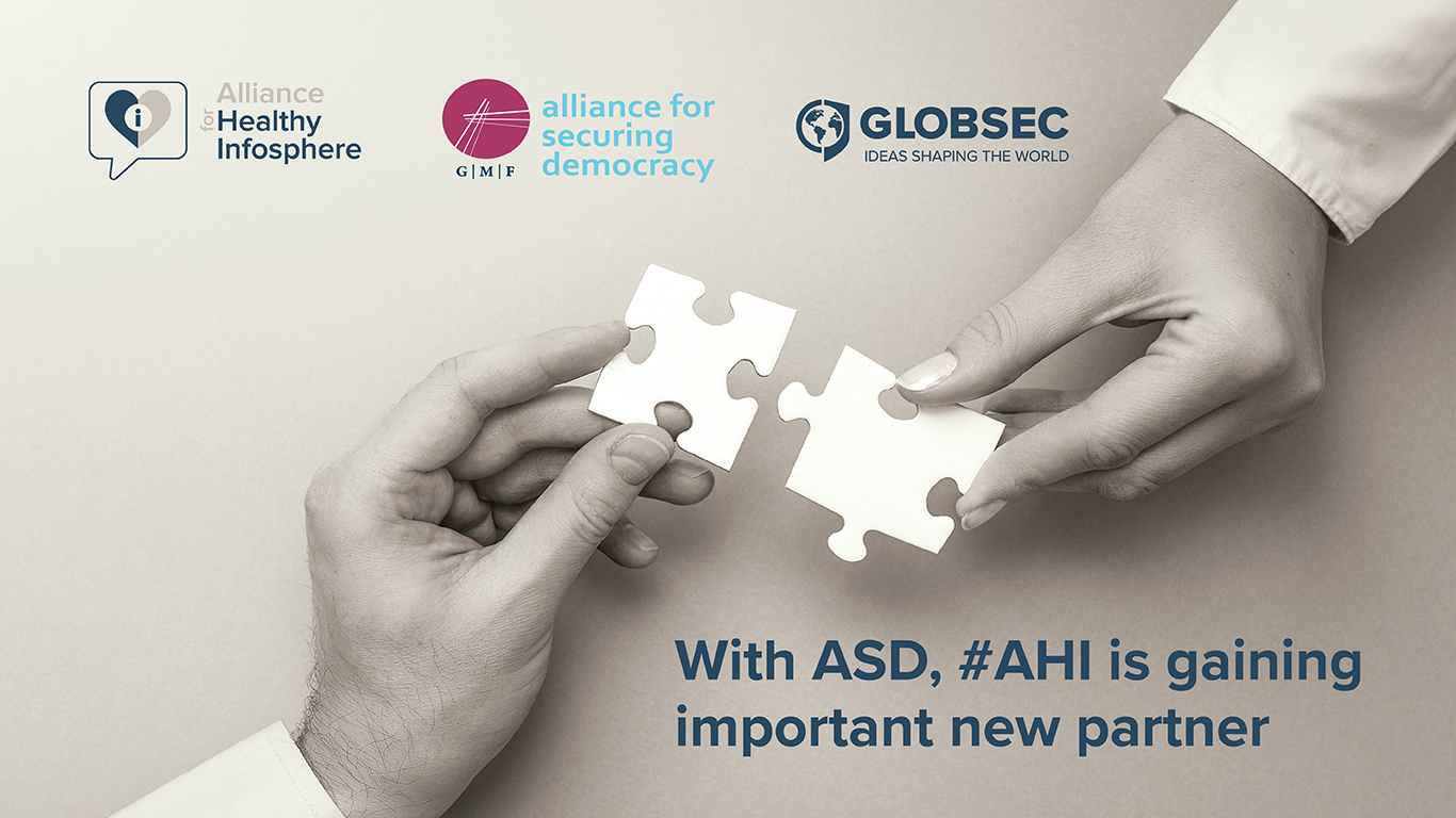 By bridging ideas, people, and resources, we are building a community geared towards creating a safe and accountable digital space and enhancing democratic resilience; a community that aims to address the undermined trust of public institutions, the lack of operational transparency among leading digital platforms, and the insufficient articulation of international norms and rules around tech companies’ responsibilities to counter the spread of disinformation, and to help develop and enforce community standards to mitigate the increasing disruption of the information space. The combination of ASD, Globsec, and AHI members’ expertise puts us in a strong position to contribute to the development of a more secure infospace.